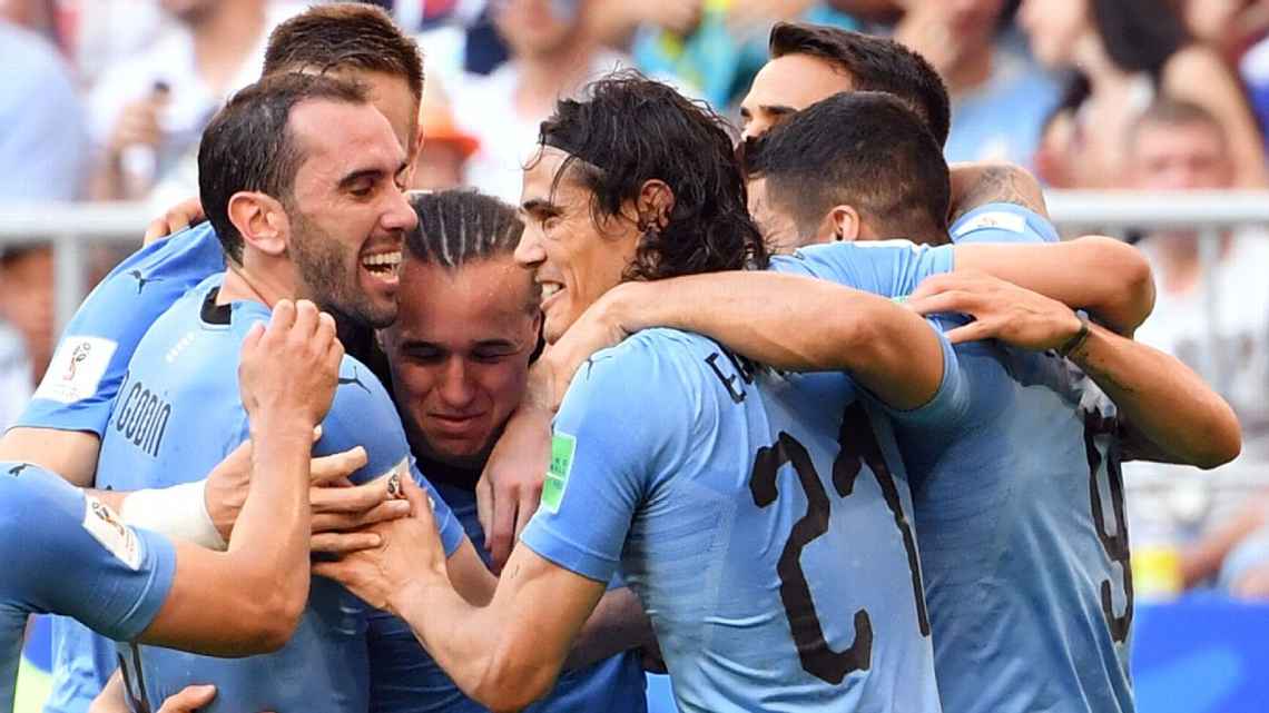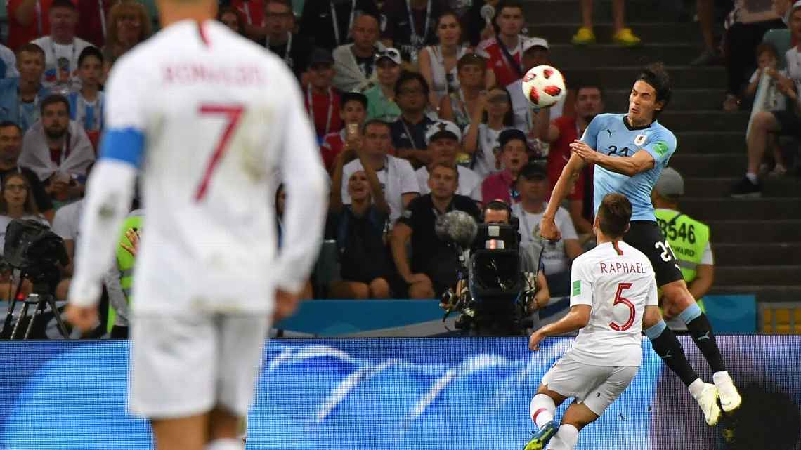 O show do atacante uruguaio começou no inicio de jogo ao aproveitar cruzamento de Luis Suarez, um belo gol de cabeça. Os Uruguaios dominaram o primeiro tempo, criaram mais chances, mas esbarraram no goleiro português, Rui Patrício. Já os lusos, como em toda a Copa, dependiam das jogadas de Cristiano Ronaldo, mas o Gajo ficou muito bem marcado pela defesa uruguaia.